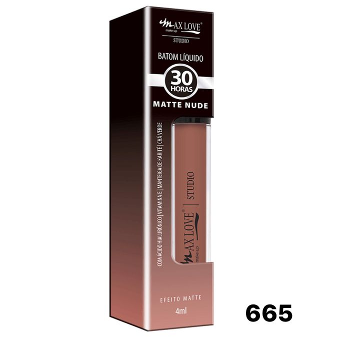 O Batom Líquido 30 Horas Max Love além de proporcionar duração de até 30 horas, também cuida dos lábios, pois sua fórmula é enriquecida com Ácido Hialurônico, Vitamina E, Manteiga de Karité e Chá Verde. Acabamento matte.