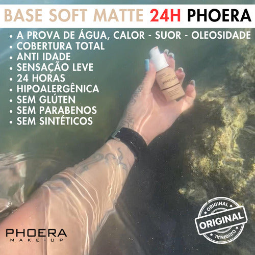 A base líquida Soft Matte da Phoera combina inovação e eficácia. Sua textura suave e fórmula adaptável ao clima criam um efeito de filtro natural, desfocando linhas e manchas para uma aparência impecável. Leve, fácil de espalhar e adequada para qualquer tom de pele, ela é perfeita para o dia a dia ou ocasiões especiais.